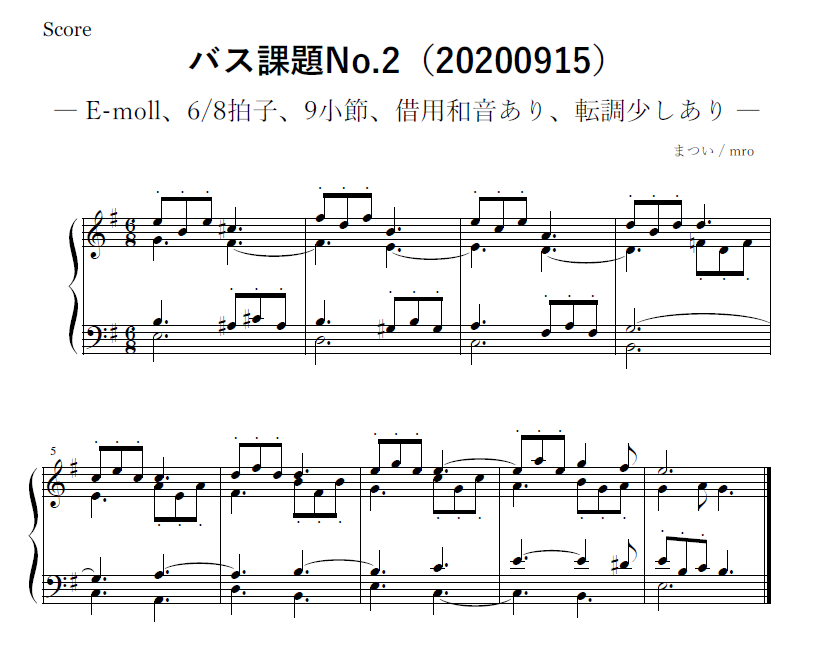 これ、実は大学の授業で「ソプラノ課題を作ってみよう!」ってテーマだった時に作ったものをアレンジしました(そもそもバス課題だし)。